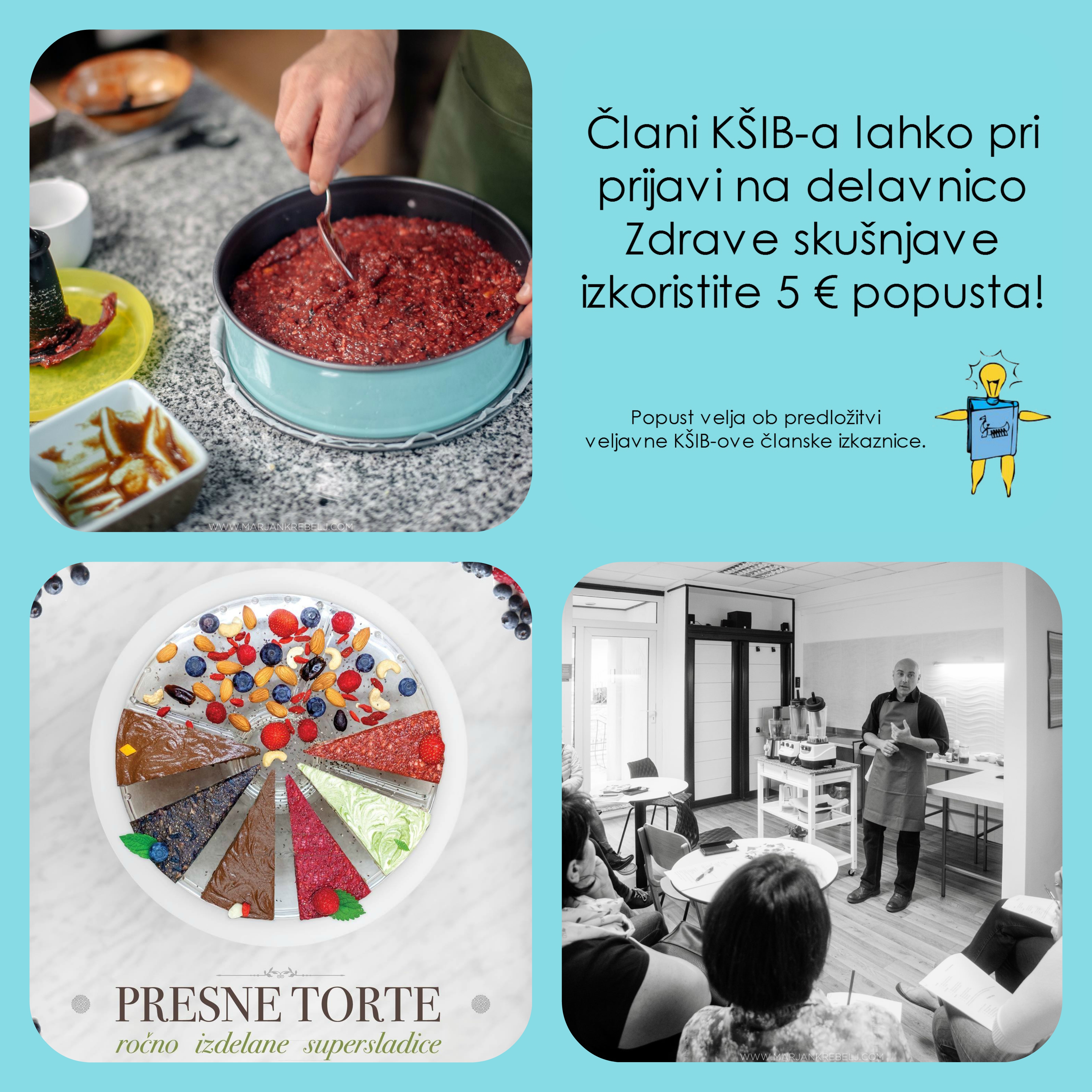 Člani KŠIB-a lahko pri vsaki delavnici Zdrave skušnjave izkoristite 5 € popusta. Informacije o aktualnih delavnicah najdete na https://www.facebook.com/