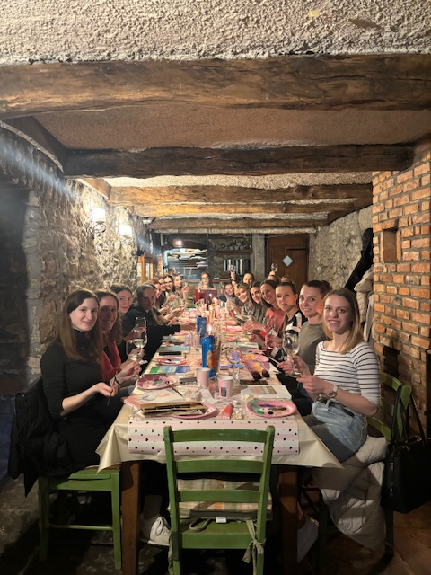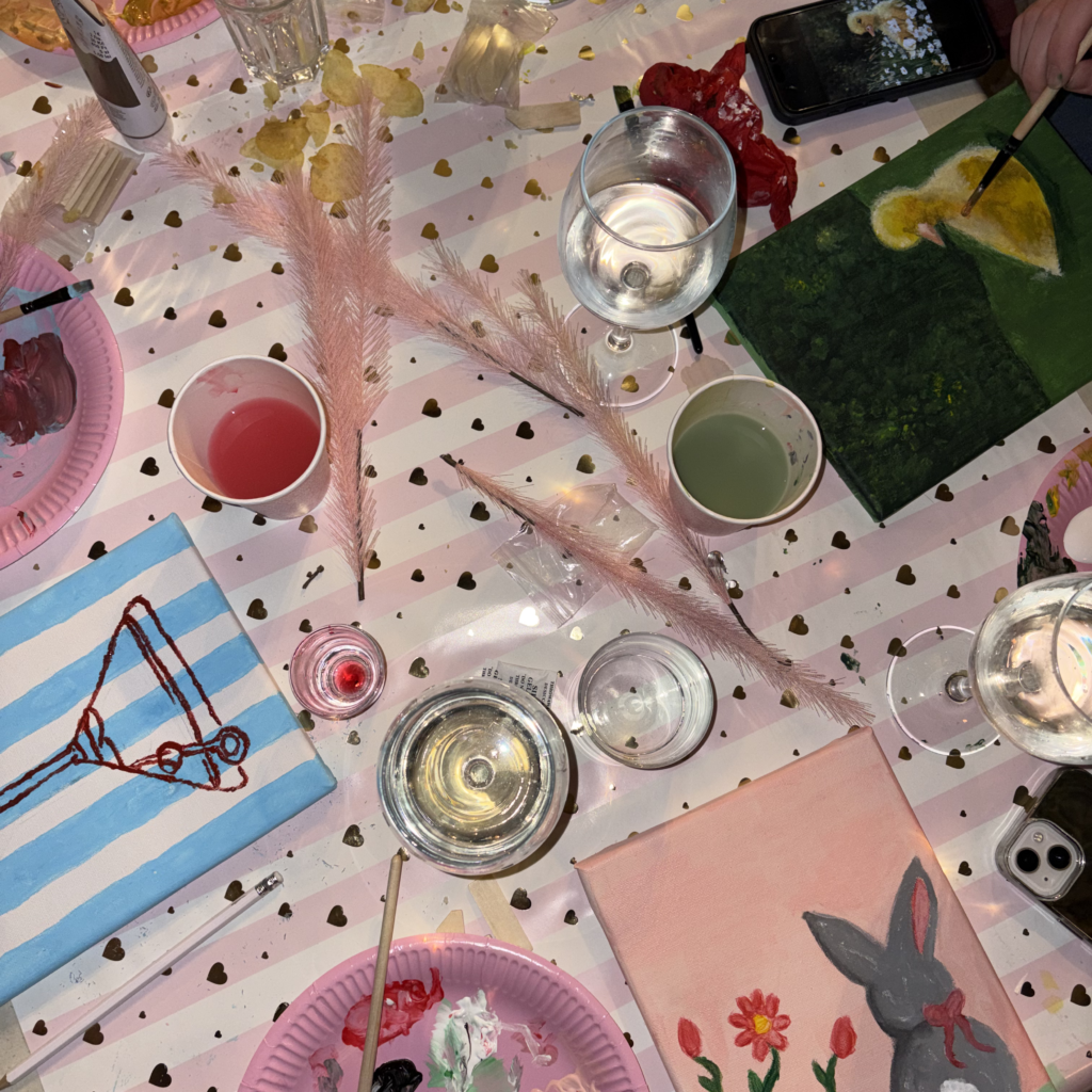 Tretjega aprila smo se družili v kleti Gostilne pri Matetu, kjer smo združili ustvarjalnost, zabavo in dobro družbo. Udeleženke so ob prihod najprej prejele platna in slikarske pripomočke ter se preizkusile v slikanju 🌸. Nastajala so raznolika in unikatna dela, od preprostih motivov do nekoliko bolj zahtevnih. Za dodatno vzdušje smo poskrbele z glasbo, slanimi prigrizki in neomejeno količino prosecca 🥂. Dogodek je bil odlična priložnost za odklop od vsakodnevnih rutin, hitenja in obveznosti 🧘‍♀️.